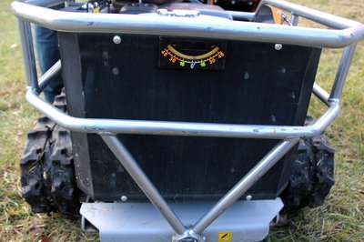 Komoly csőkeret védi a technikát, a dőlésérzékelő műszer itt csak informál