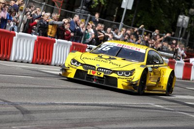Timo Glock a sárga „postakocsiban”. A hamarosan ismét hazánkba látogató DTM sorozat promóciója keretében ismét a pályán