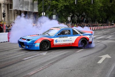 A hajmosás garantált egy ilyen gumifüstölést követően – driftparádé az Andrássy úton