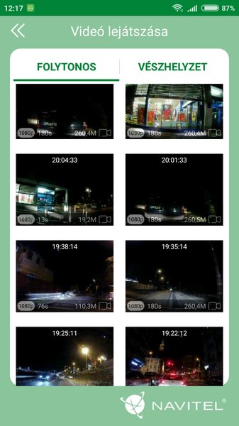 Navitel R1000: a felvételek megtekinthetők és letölthetők az alkalmazással