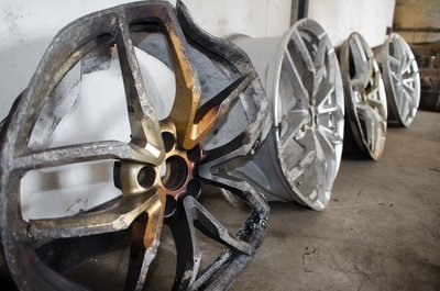 Négyféle állapotban a négy húszcolos felni. Darabja újonnan ötszázezer forint, törötten annyit ér, amennyit a híre