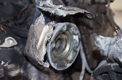 Így néz ki egy megégett győri V10, miután megszabadítják a hengerfejtől és ráolvadt műanyagoktól