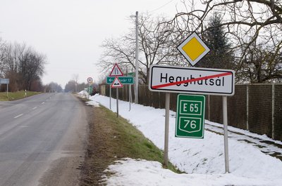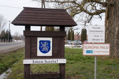 Saját címeres üdvözlőtábla Hegyhátsál határán. A 157 lelkes községnek nem csak Ford-bontója, de saját csillagvizsgálója is van