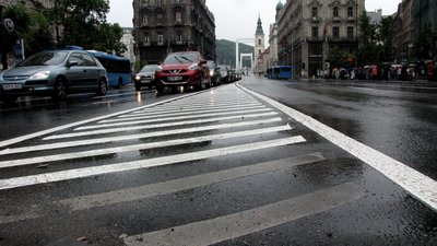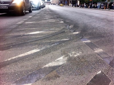 Sajnos a nyilak és a Busz felirat még nem újultak meg, de ezeknél sokkal fontosabbak a terelővonalak
