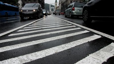 Szép kontrasztos a vadiúj fehér csíkok és a feket aszfalt
