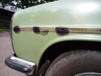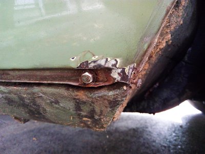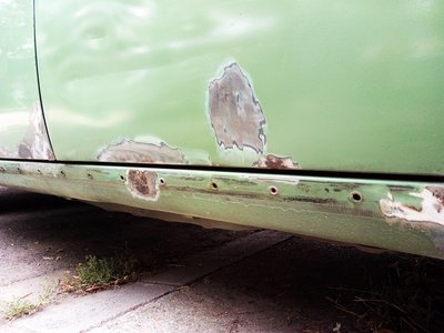 Az állólámpás egyik leghamarább elrohadó pontja az, ahol az első sárvédő találkozik a küszöbbel. Mögötte beszorul a sár, a nedvesség, erről az oldalról takarja a küszöbdíszléc, ami alá szintén beragad a nedves mocsok, s így folyamatosan dolgozik a galváne