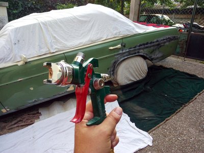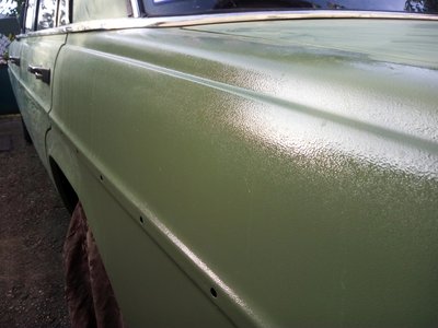 Elvileg itt minden stimmelt: ötször ellenőriztem miből mennyit keverek, baállítottam a nyomást, a szórási képet, nem is volt nedves az idő. Mégis olyan lett, mint egy kedves, nagy, zöld smirgli