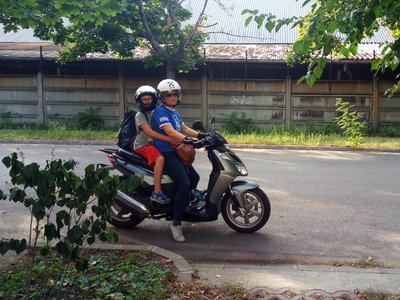 Kati Mercije szervizben, az Apriliával intézi a dolgait. Mert itt még megy az Aprilia. Pár nappal később már a Spacymet kobozta el