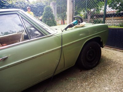 Egész szép lett a kocsi jobb oldala. Vasárnap reggel, megint egyedül, megint reggeli nélkül. De haladni kell