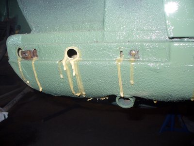 Ilyen a festés közelről, van apró hiba, de alapvetően sima, az árnyalat is stimmel, alatta meg kiöltem a korróziót