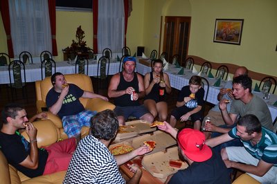 Péntek délután lassan gyülekeztünk. Ezek a furcsa emberek megették a pizzát és megittak mindent!