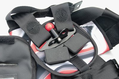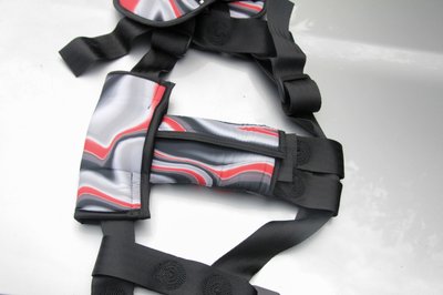 Párnázott mellkasi rész, széles hevederek igyekeznek a sérülés veszélyé csökkenteni