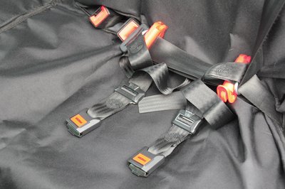 Nem csak a biztonsági öv csatjainál lehet szétcipzárazni, de az egész szétválasztható, hogy ledöntött ülésnél is használni lehessen