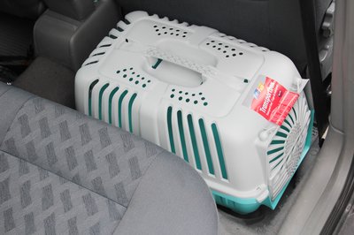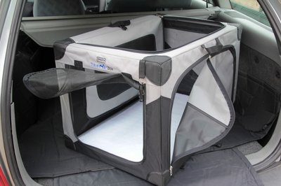 A nagyobb dobozokat legjobb, ha a kocsi csomagtartójába tesszük, de csak három- és ötajtósoknál, meg kombiknál működik a dolog. Érdemes keresztbe tenni, így egy erősebb fékezésnél, vagy ütközésnél az állat csak keveset tud elmozdulni. Ha van rögzítőfül a