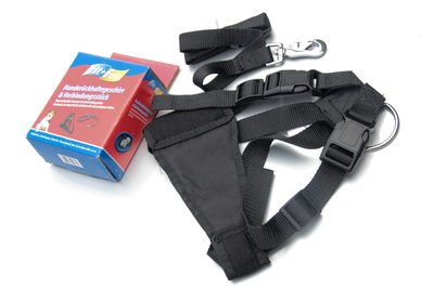 A szigorú TÜV-minősítésen is átesett hám két szíjjal rögzül a gyári biztonsági övhöz. Így, helyesen beállított hevedereknél egyforma terhelést kap a kutya jobb- és baloldala