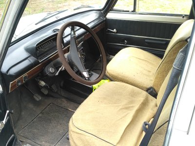 Még érintetlen, így vettem meg: üléshuzatokkal és kormányvédővel. Ebben az évjáratban (1979) már fatapétás a műszerfal, a kormányon meg nincs krómkarika