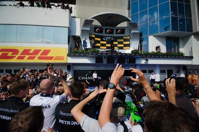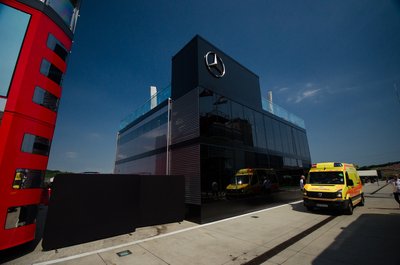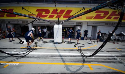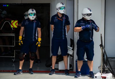 Stílustörés: A Williams szerelői viselnek birodalmi rohamosztagos sisakot, de a Mercedes központja a halálcsillag