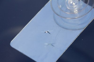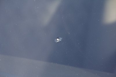 Ez egy közvetlenül a vezető orra elé becsapódott kavics csillagformájú nyoma
