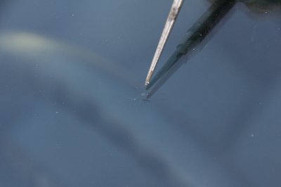 Ennyi látszik a sérülésből. A túlcsordult gyantát letörlik, majd a napfény UV-sugárzásának köszönhetően megköt a bejutott anyag. Ha nincs elég erős napfény, UV-lámpával segítenek rá a folyamatra