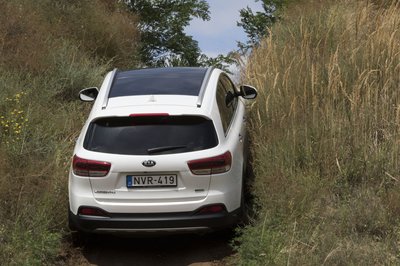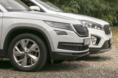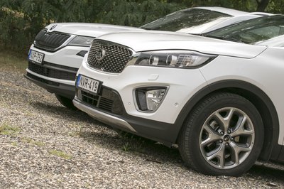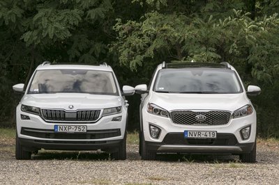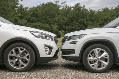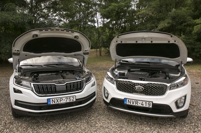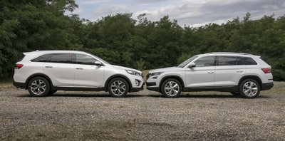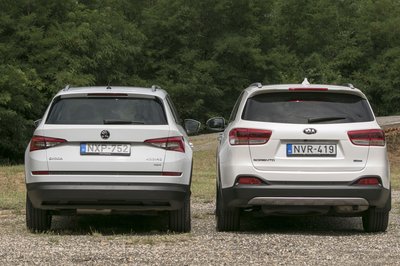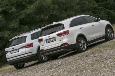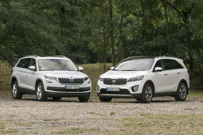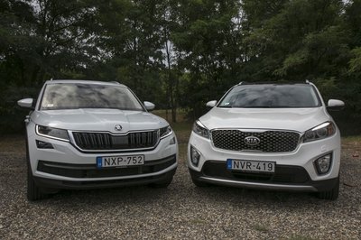 A Kodiaq szigorúan škodás, a Sorento viszont nagy arcával egy picit kilóg a Kia-sorból...