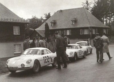 Az offenzíva. Három A110-es sorban a versenypályán - ez a szitu kétszer is előfordult Mote Carlóban (1971, 1973), igaz, ott nem így futnak be