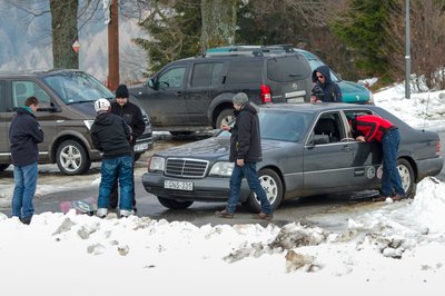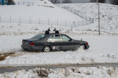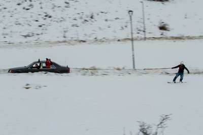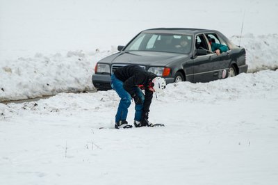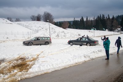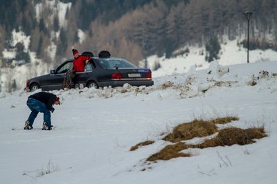 Szomorú látvány fogadott a parkolóban: hó már ott sincs, ahol tegnap volt, ellenben sárból jól áll a környék