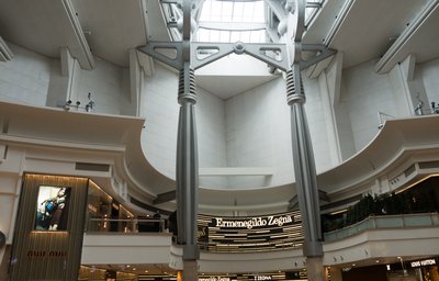 Steampunk belsőépítészet, óriási Ermenegildo Zegna butikkal