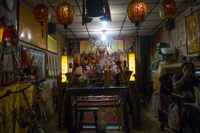 Taoista szentély az egyik nagy fedélzeti kameragyár bejáratánál