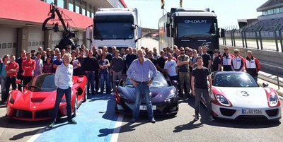 Balról: Rory Reid (autós újságíró), akiből egyelőre sokat nem láttunk, Sabine Schmitz, Matt LeBlanc, Chris Evans, Chris Harris, Eddie Jordan (még nem szerepelt) és a Stig. Kicsit sok ez, de kétségkívül politikailag nagyon korrekt. Vajon ez kell a több szá