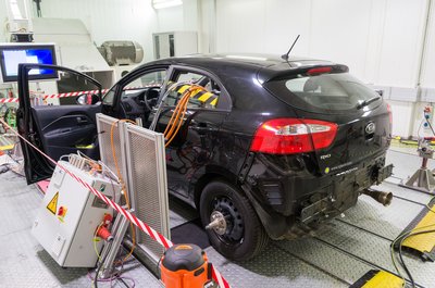Ha sikerrel vette az akadályokat az új üzemanyag, jöhet a próbapados tesztelés. Itt éppen egy Kia Riót készítenek elő a feladatra
