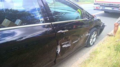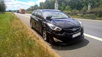 Máma már nem hasad tovább: a jobbról támadó kamion a gumit is széttépte, a Hyundai saját lábon már nem tudott volna távozni