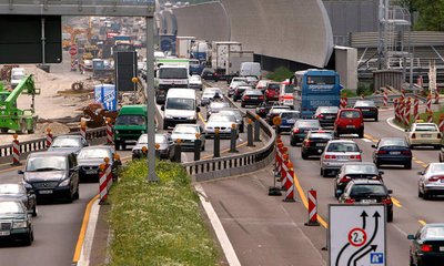Autópályákon az építés-felújítás alatt álló szakaszokon szokták összébb terelni a sávokat