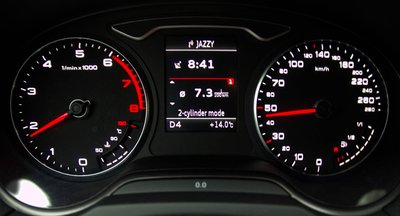 Elméletileg tud kevesebbet is, gyakorlatilag városban nem igen. A kéthengeres üzemmódra külön felirat figyelmeztet. Leginkább azért, hogy észrevegyük: most spórolunk. Valójában messze nem annyit, amennyit a sajtóanyag ígér.