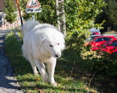 Pireneusi hegyikutya a Turininél segget masszíroztatni érkezik