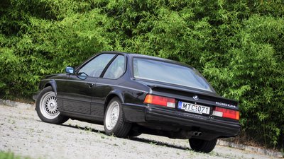 A fekete autó és a shadowline-kombináció nagyon ütős. Nincs ültetve, a kései E24-ek sokkal alacsonyabban ülnek, mint a krómlökhárítós koraiak.
