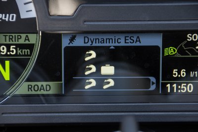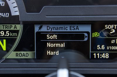 A Dymanic ESA, vagyis az elektronikus futóműállítás vezérlése egyszerű. Itt éppen a csillapítás jellegét adhatjuk meg, de ezt finomhangolja a rendszer menet közben a ki- és berugózások figyelésével
