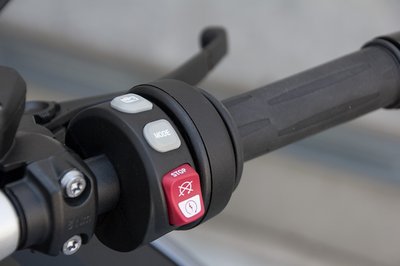 A motorok iDrive-jaként képzelhetik el a markolat tövében lévő állítókereket. Tekerve és nyomkodva lépkedhetünk vele a vezérlőmenüben. Néha menet közben is rányúltam, véletlenül