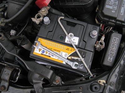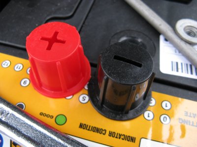 Akkupólus a doboz oldalán: legyen átkozott, aki kitalálta. Pár amerikai dögben van, például a Stratus kerékjáratba épített(!) akksija ilyen