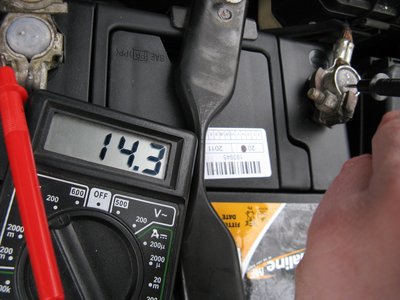 A multiméter arra jó, hogy a töltés meglétét ellenőrizzük: 13,8-14,4 volt között jó, a több túl sok, a kevesebb kevés