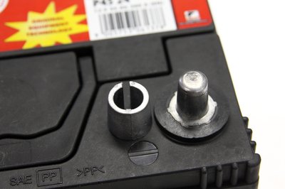 Teherautó-akku. 100 Ah-tól felfelé, a rövidebb élén vannak a sarkai