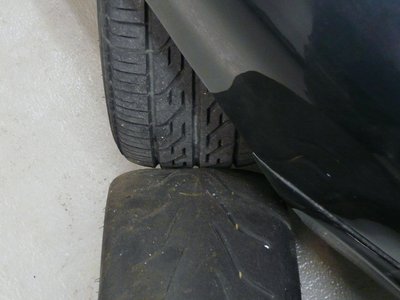 Ez például egy 195/50-es Toyo Proxes R888. Ha ilyet tennénk fel, egyből kevesebb lenne a hely, még a gyári felnivel is