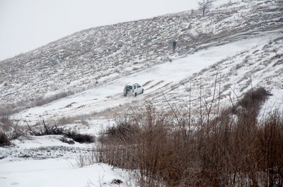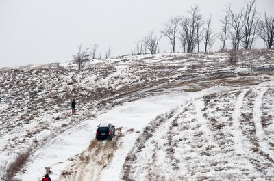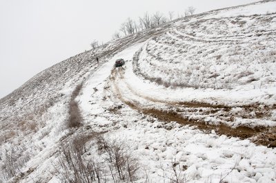 Sajnos AT (all terrain) gumi volt rajta, ami itt a siratófalon hátrány volt, még egy sima téli gumihoz képest is, mert hamar eltömődött