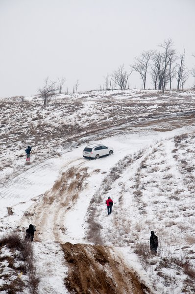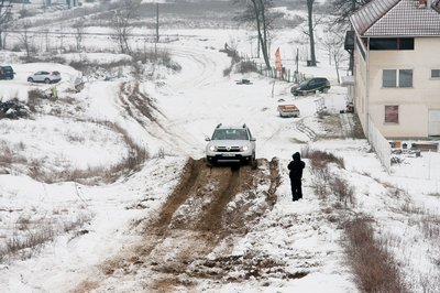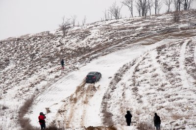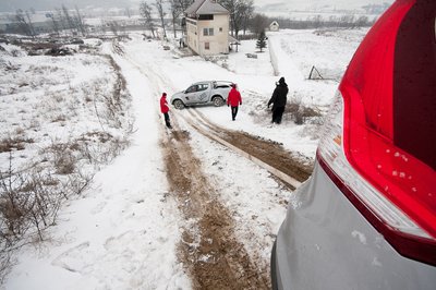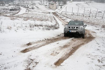 A földúton elboldogul, de az alján lévő műanyag elemek ijesztő hangon karcolták a havat