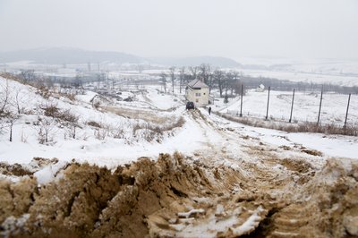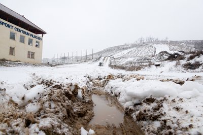 A piliscsévi pálya megérkezésünkkor: sáron hó, azon jég