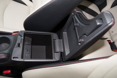 Fedél alatt lakik a pohártartó, és a könyöklő alatt is van rekesz