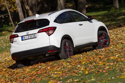 Ez a fajta gömbölydedség ma már megint menő, pedig az utóbbi években kezdtek szögletes, éles vonalakat növeszteni a SUV-ok. Talán ettől olyan békés, kedves forma a HR-V.