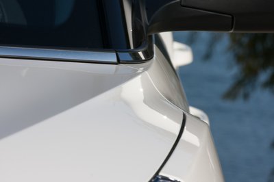 A nem fekete tetős autókon jobban látszik a C oszlopon az elválasztó csík