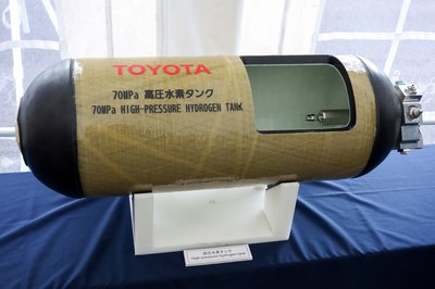 Ilyen a hidrogéntartály. Tiszta műanyag, de ettől még dög nehéz