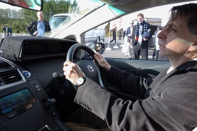 A kicsi, magas dobozok a Toi-Toi vécék, a három QR-kód pedig a három tüzelőanyagcellás Toyota