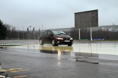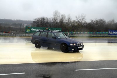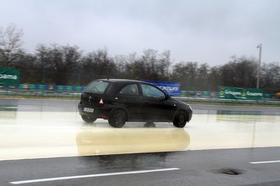 Nem csak időben, hanem gyorsan és nagyon is ellen kell kormányozni. Lehetőleg fékezés nélkül, hiszen azzal aránytalanul sokat követelnénk a gumiktól, amivel képtelen megbirkózni a csúszós felületen.